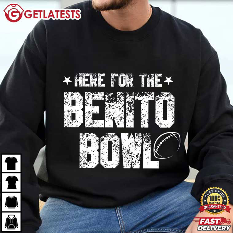 Here For The Benito Bowl LIX Halftime Show Football Bad Bunny T-Shirt – music shirt, classical music t-shirts, concert tour t shirts