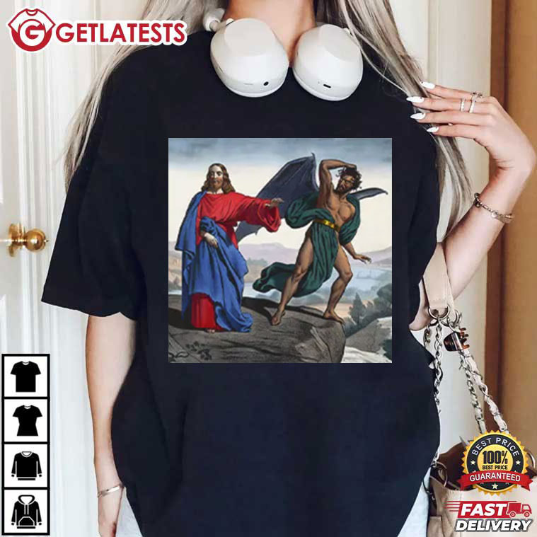 Jesus Satan Tempts Christ On The Mountain Meme T-Shirt – graphic t shirts, retro graphic t shirts