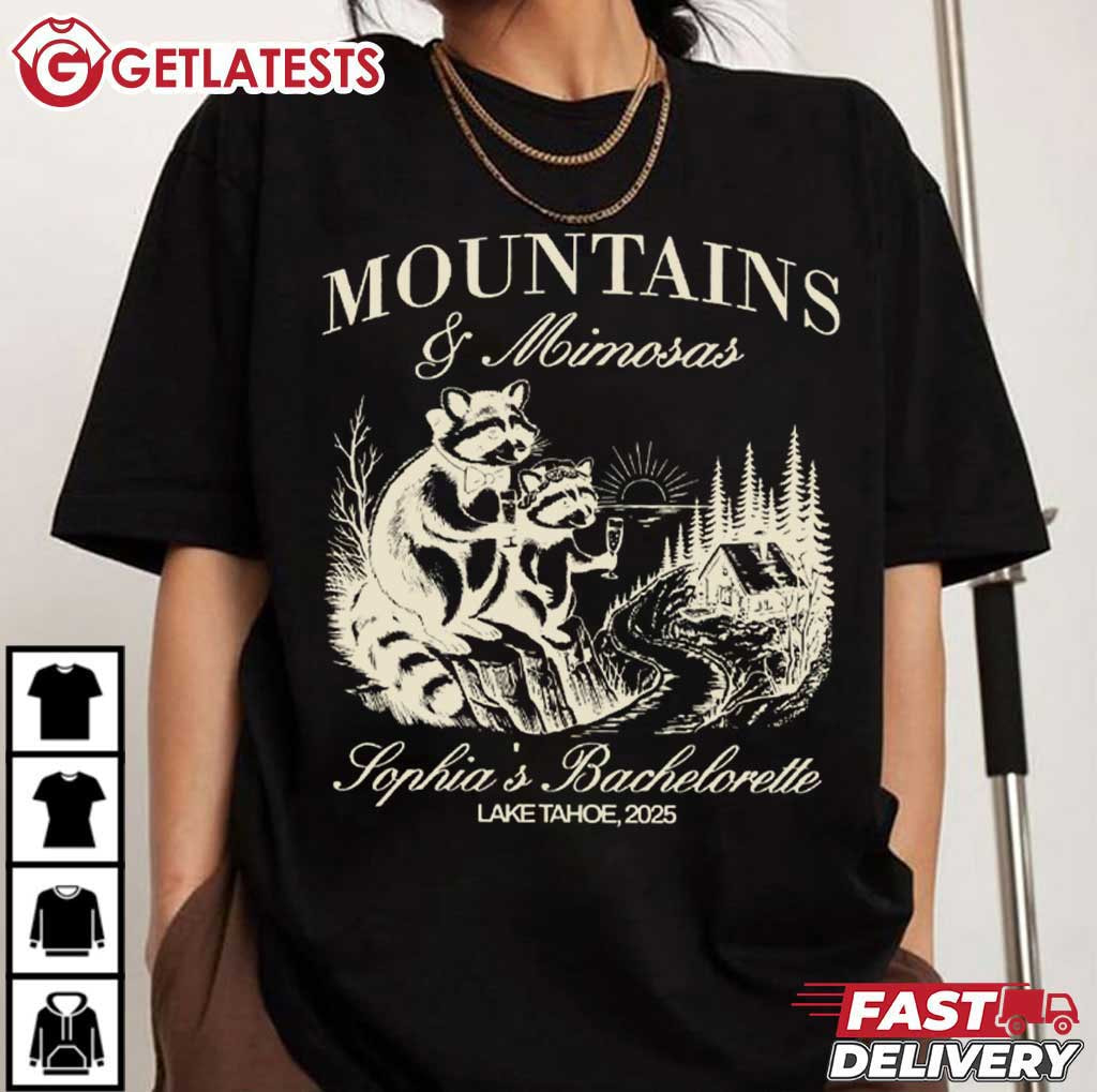 Mountains And Mimosas Feral Raccoon Bachelorette Party Custom Name T-Shirt – graphic t shirts, retro graphic t shirts