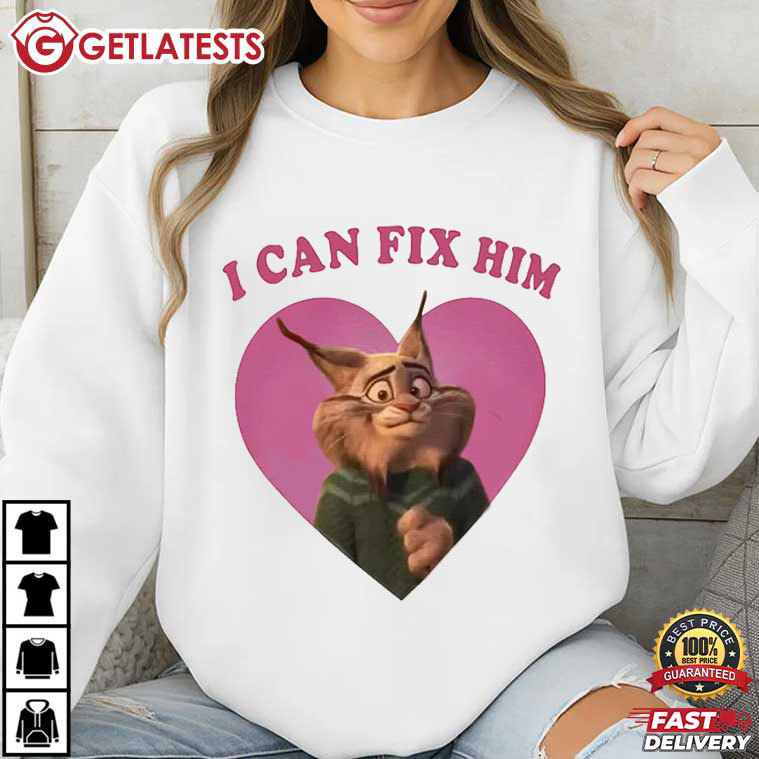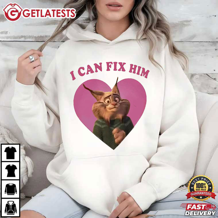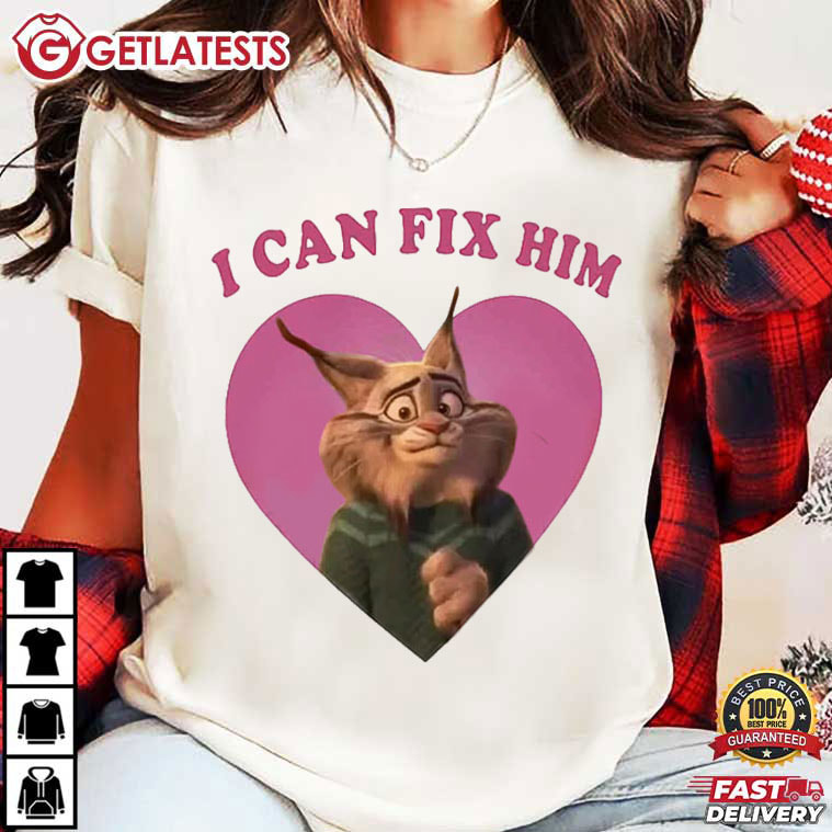 Cute, chaotic, and painfully relatable —this Pawbert Lynxley I Can Fix Him Zootopia Gift For Fan T-Shirt is made for fans who love internet humor mixed with animated-movie charm. The heart graphic and expressive character art turn the joke into something intentionally over-the-top—cute, ironic, and self-aware rather than serious.