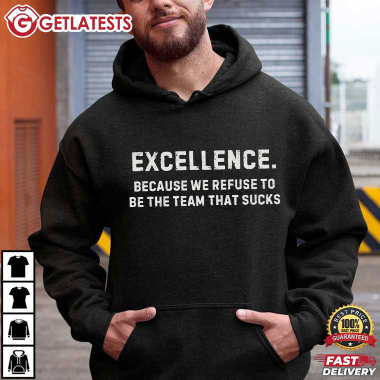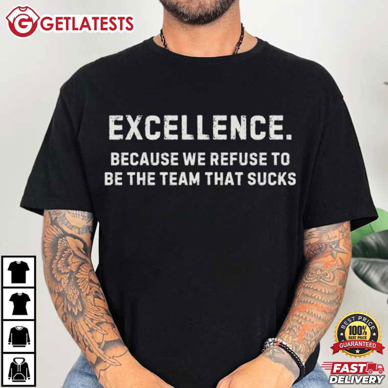Some statements don’t need decoration. The Team Excellence Motivational Office Apparel Gift T-Shirt says everything in one clean, unapologetic sentence: “EXCELLENCE. Because we refuse to be the team that sucks.” Comfortable and easy to style, the tee pairs effortlessly with jeans, chinos, or layered under a jacket. It’s the kind of shirt people actually wear—not just once, but often—because it feels relatable, sharp, and earned.